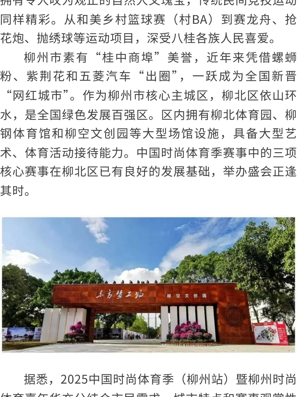 中國時尚體育季“首秀”廣西,定在柳州! 發(fā)布時間:2025年07月30日 10時來源:本站原創(chuàng)瀏覽:5 人次