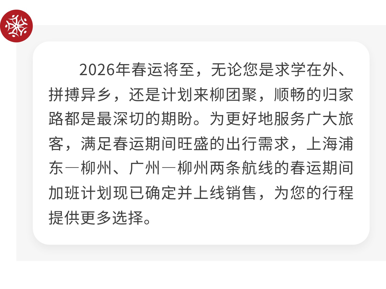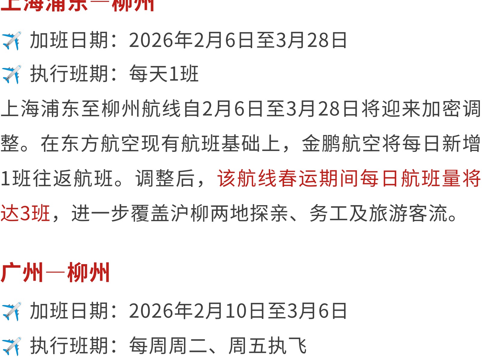 春運(yùn)加班航線來了,溫暖您的回家路! 發(fā)布時(shí)間:2026年02月12日 13時(shí)來源:本站原創(chuàng)瀏覽:11 人次