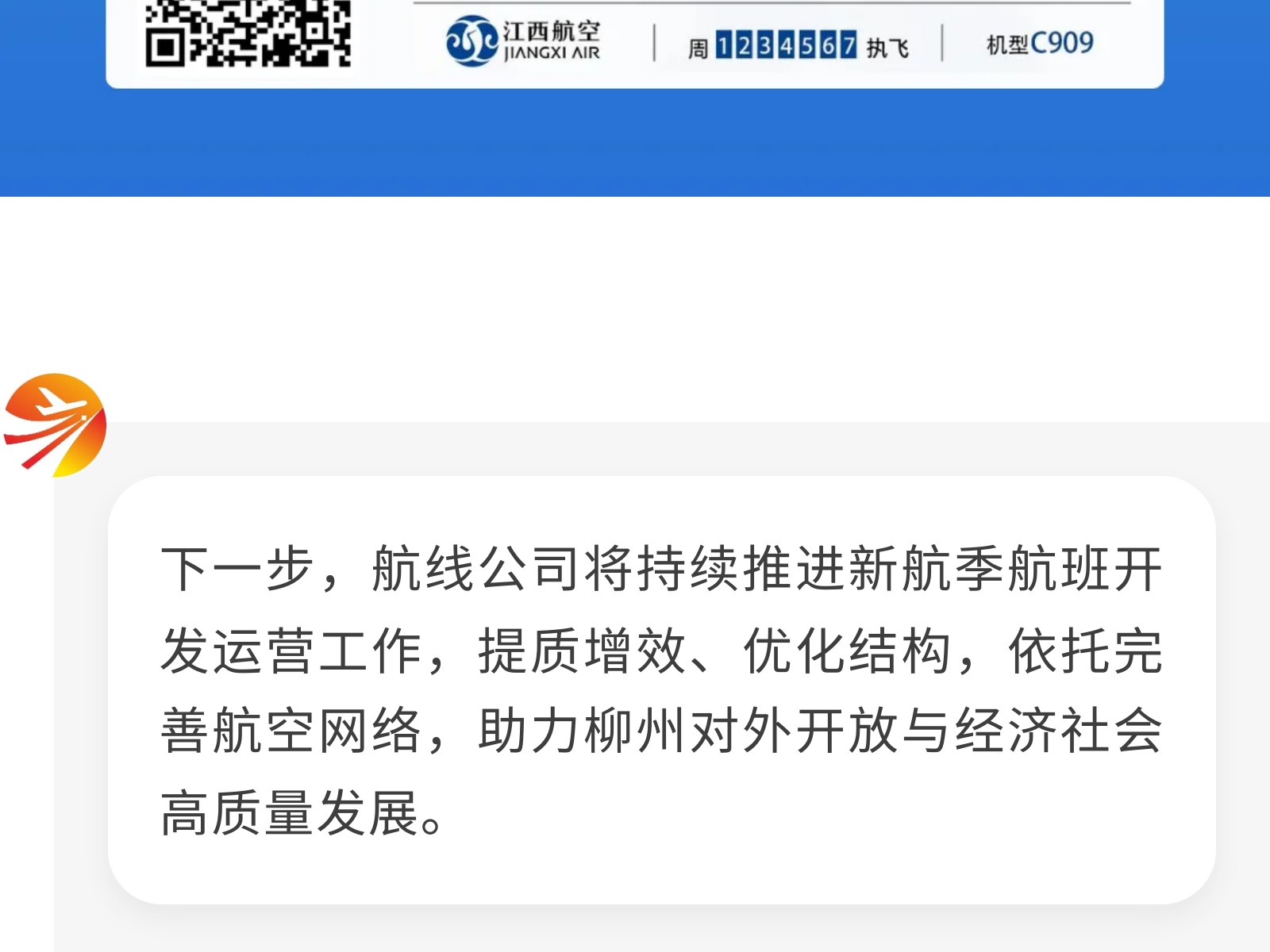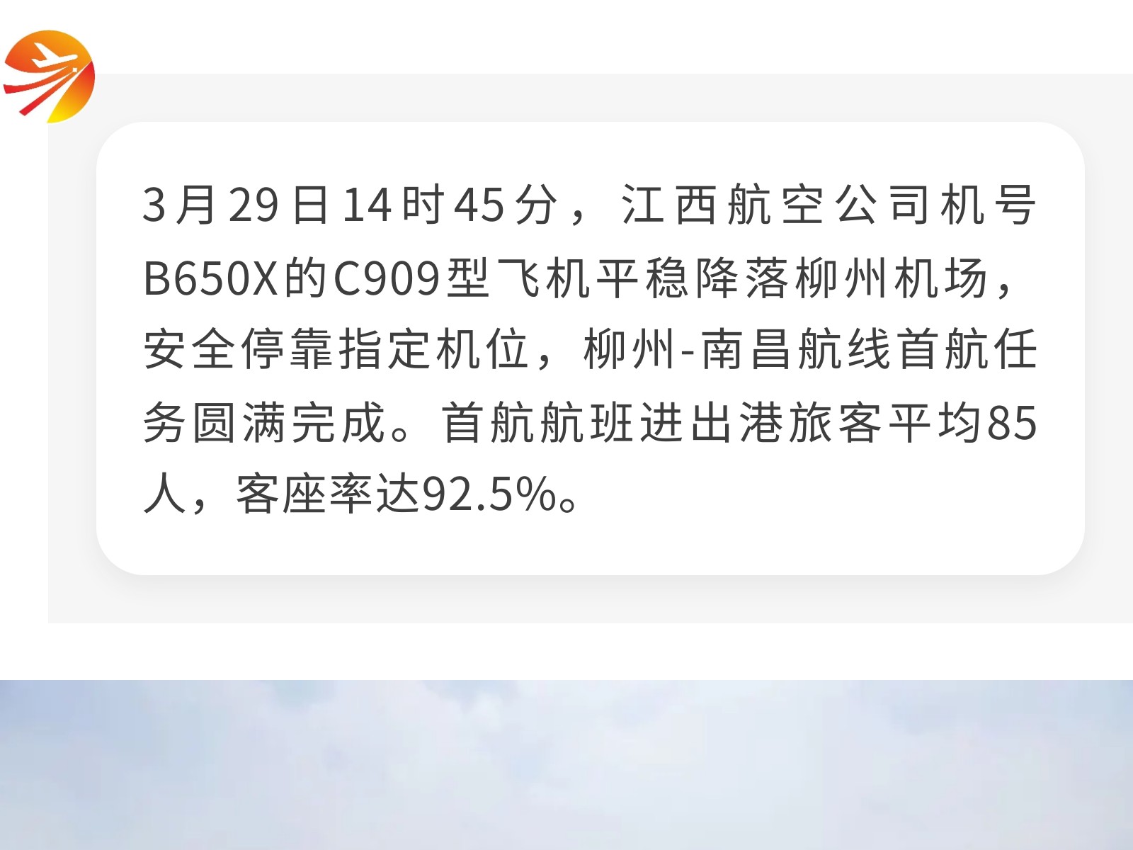 2026年夏秋航季南昌-柳州首航成功 發(fā)布時間:2026年04月01日 18時來源:本站原創(chuàng)瀏覽:3 人次