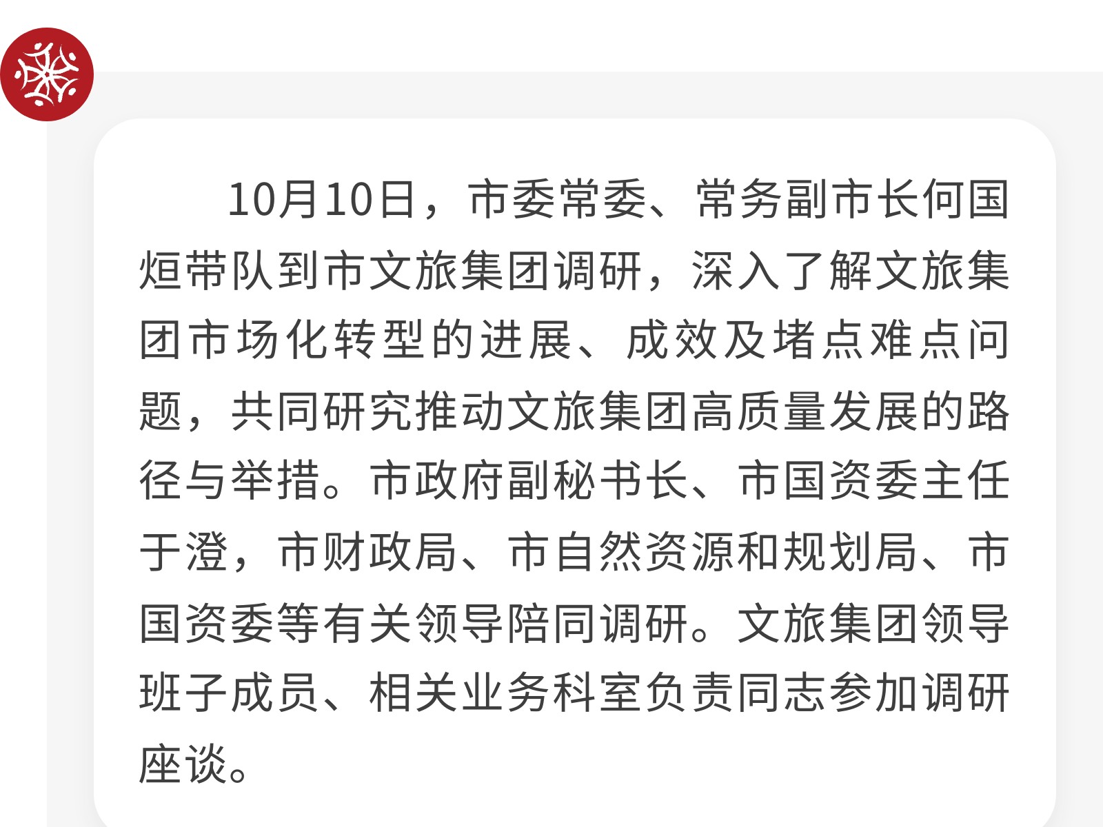 市委常委、常務(wù)副市長何國烜到市文旅集團調(diào)研 發(fā)布時間:2025年10月11日 15時來源:本站原創(chuàng)瀏覽:95 人次