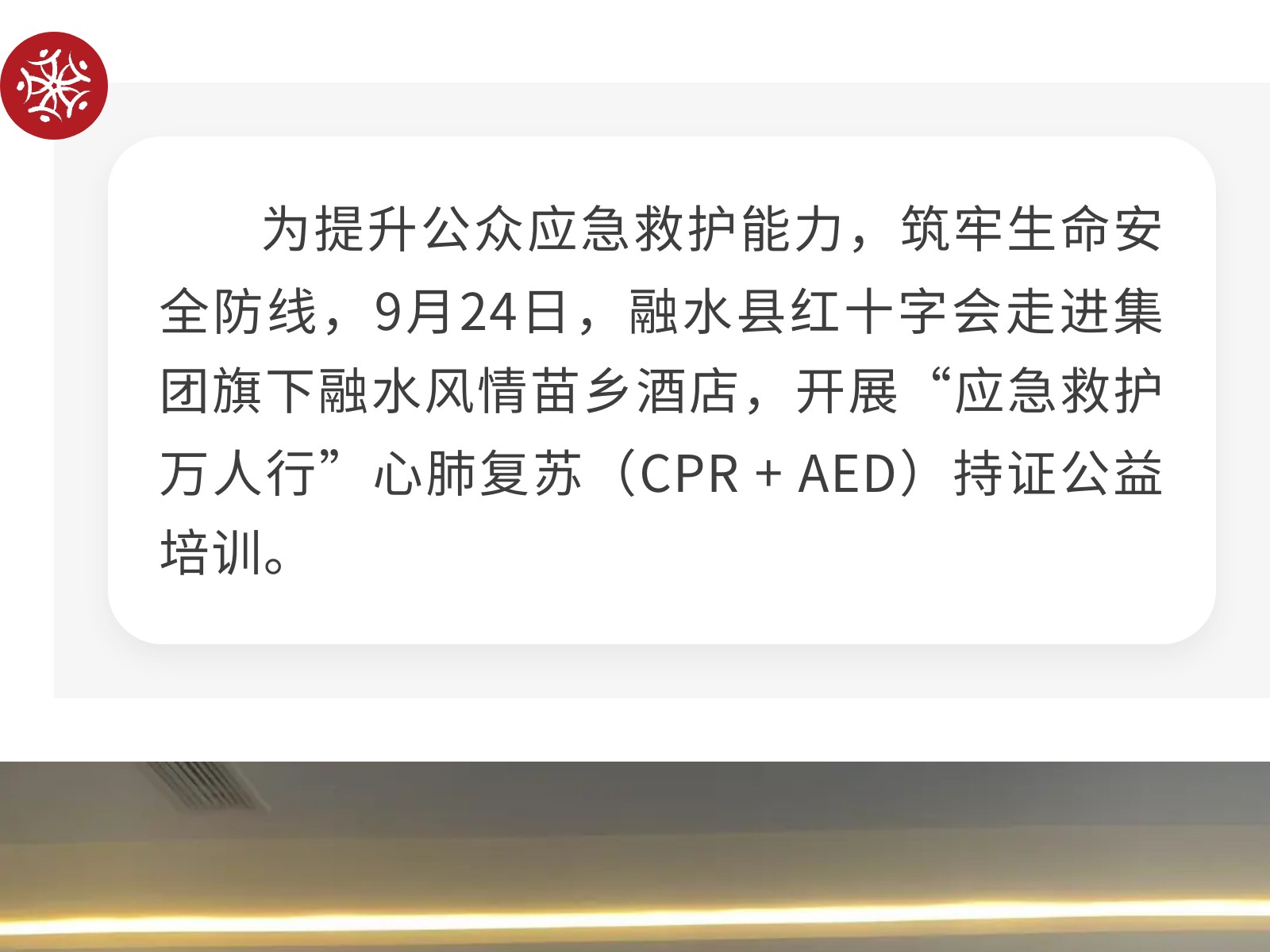 融水縣紅十字會到集團(tuán)旗下融水風(fēng)苗鄉(xiāng)酒店開展“應(yīng)急救護(hù)萬人行”心肺復(fù)蘇持證公益培訓(xùn) 發(fā)布時間:2025年10月14日 15時來源:本站原創(chuàng)瀏覽:96 人次