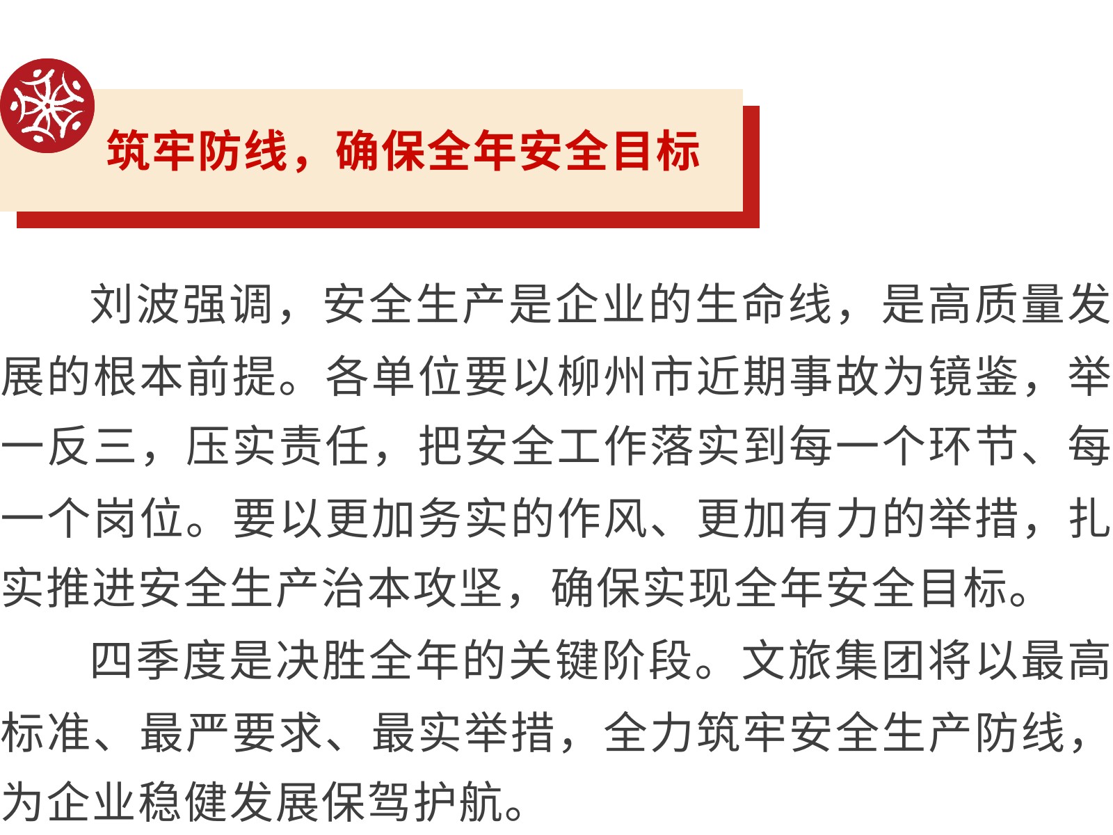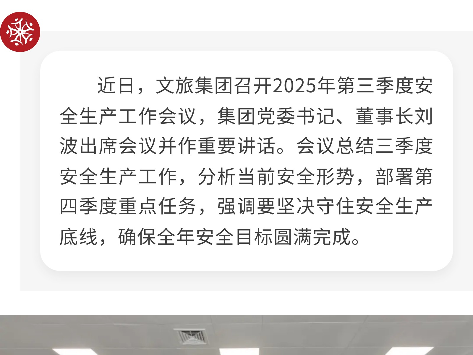 【壓實(shí)責(zé)任 筑牢防線】文旅集團(tuán)全面部署2025年第四季度安全生產(chǎn)工作 發(fā)布時(shí)間:2025年10月24日 10時(shí)來源:本站原創(chuàng)瀏覽:83 人次