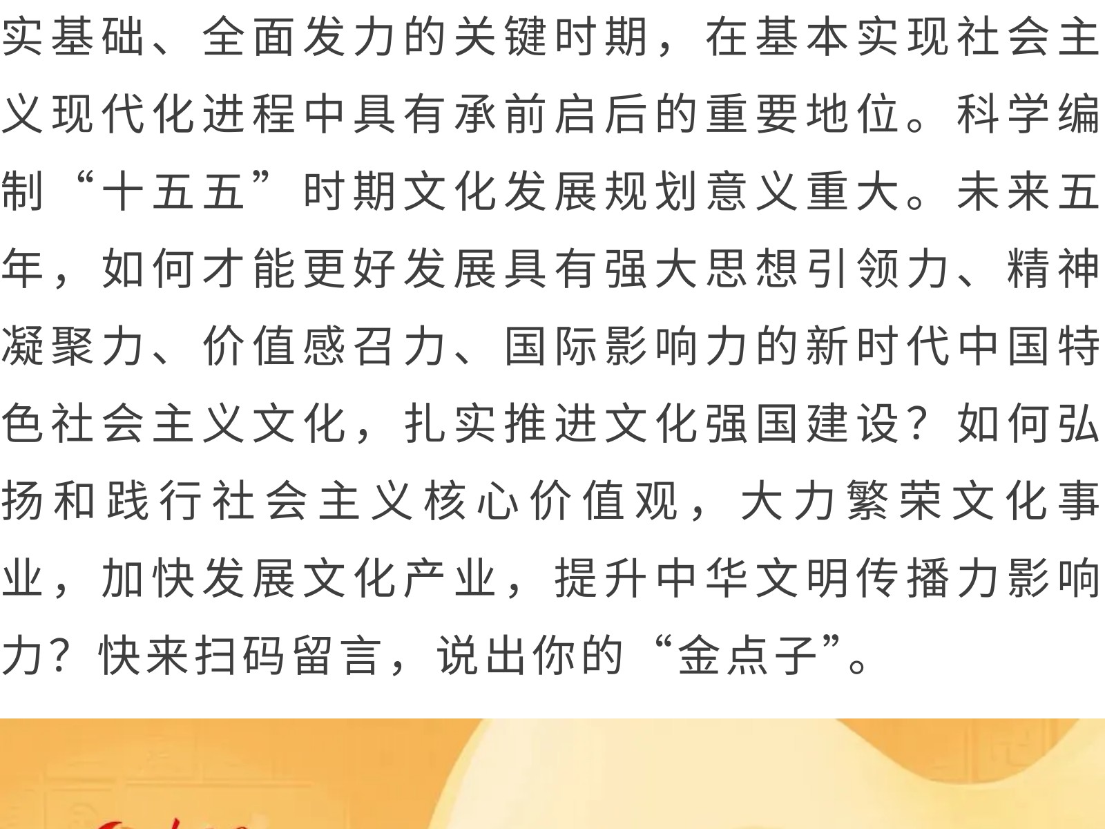 “十五五”文化發(fā)展規(guī)劃編制工作開展網(wǎng)絡(luò)征求意見活動 發(fā)布時間:2025年11月11日 11時來源:本站原創(chuàng)瀏覽:108 人次
