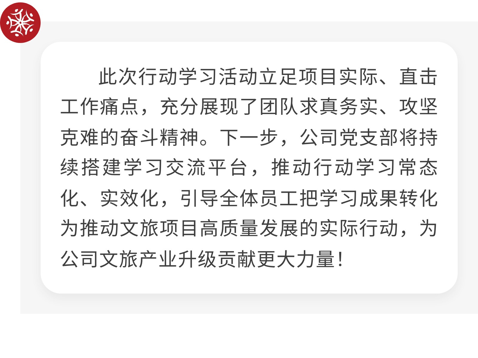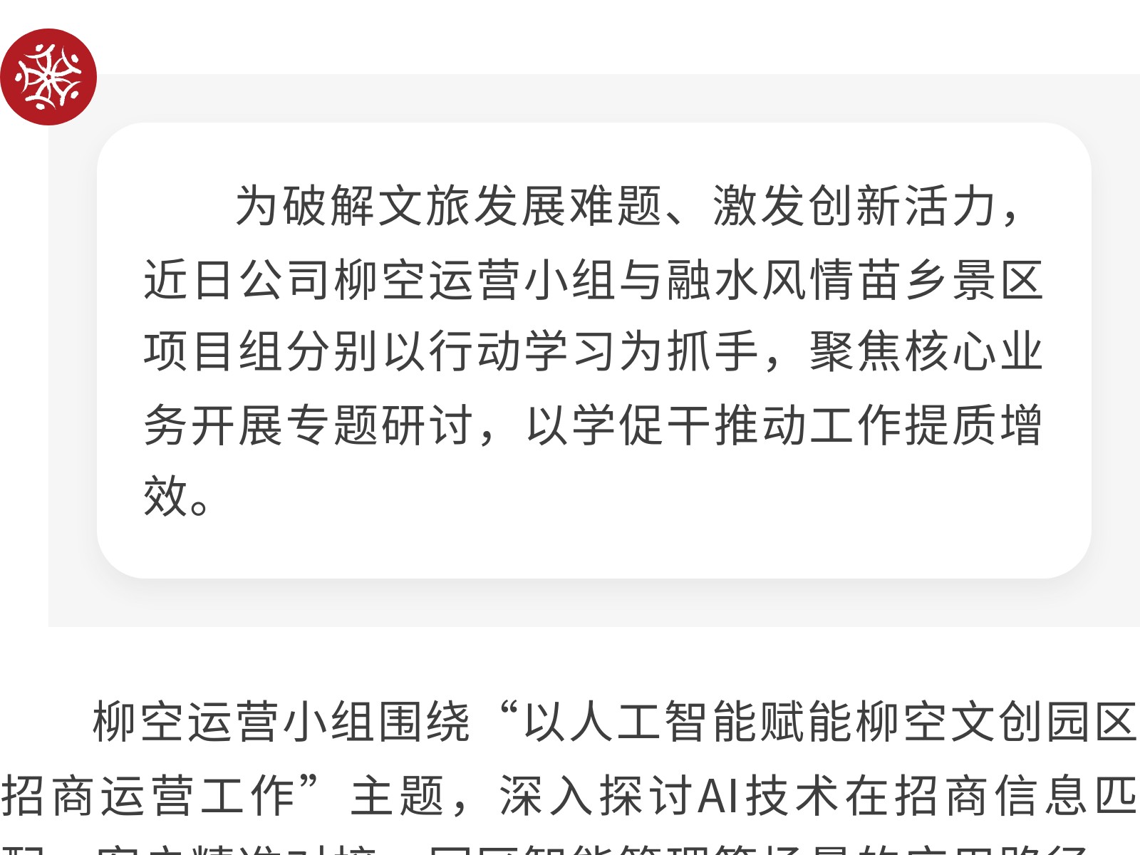 【學(xué)思踐悟強(qiáng)本領(lǐng),實(shí)干擔(dān)當(dāng)促發(fā)展】柳州文旅集團(tuán)文發(fā)公司兩大項(xiàng)目組開(kāi)展行動(dòng)學(xué)習(xí)活動(dòng) 發(fā)布時(shí)間:2025年11月28日 09時(shí)來(lái)源:本站原創(chuàng)瀏覽:25 人次