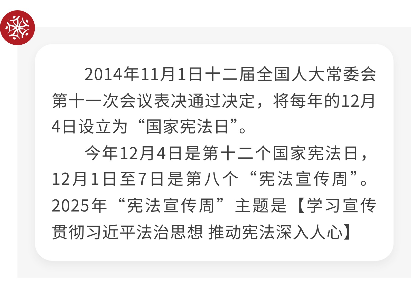 【憲法宣傳周】弘揚(yáng)憲法精神,守護(hù)法治根基。 發(fā)布時(shí)間:2025年12月08日 10時(shí)來(lái)源:本站原創(chuàng)瀏覽:71 人次