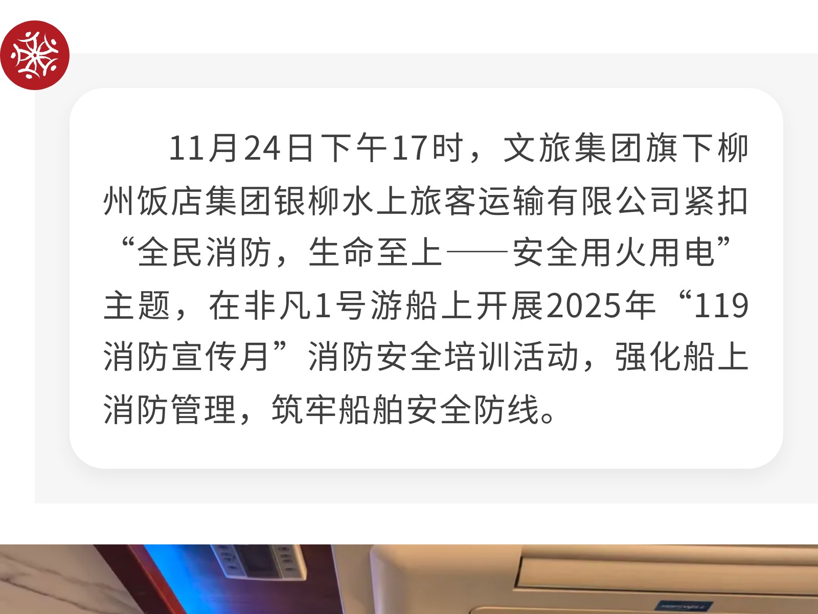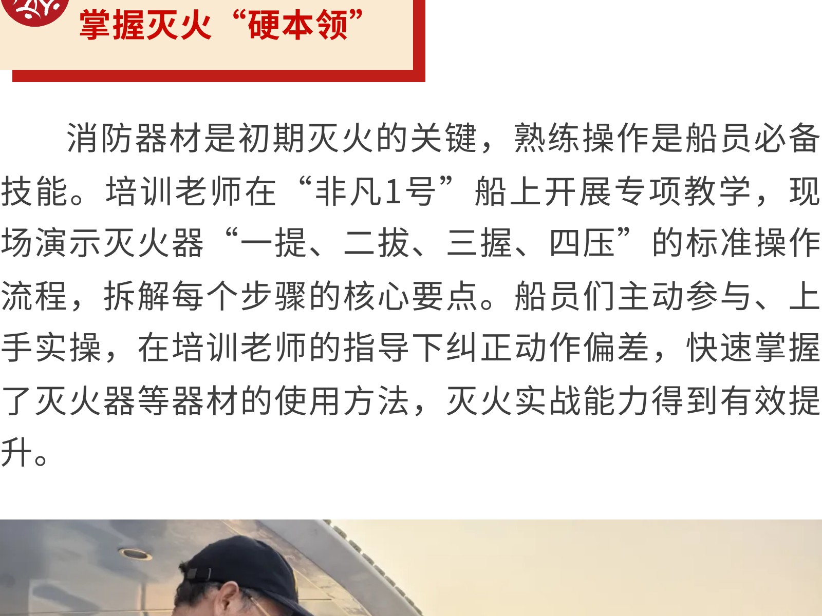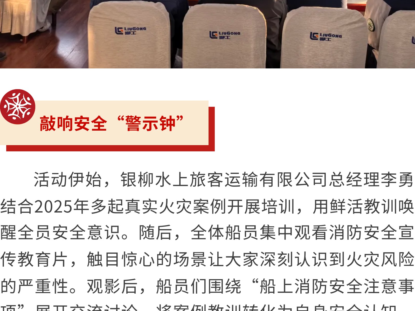 【強(qiáng)化船上消防,守護(hù)航行安全】銀柳水上旅客運輸有限公司開展消防安全培訓(xùn)活動 發(fā)布時間:2025年12月09日 10時來源:本站原創(chuàng)瀏覽:73 人次