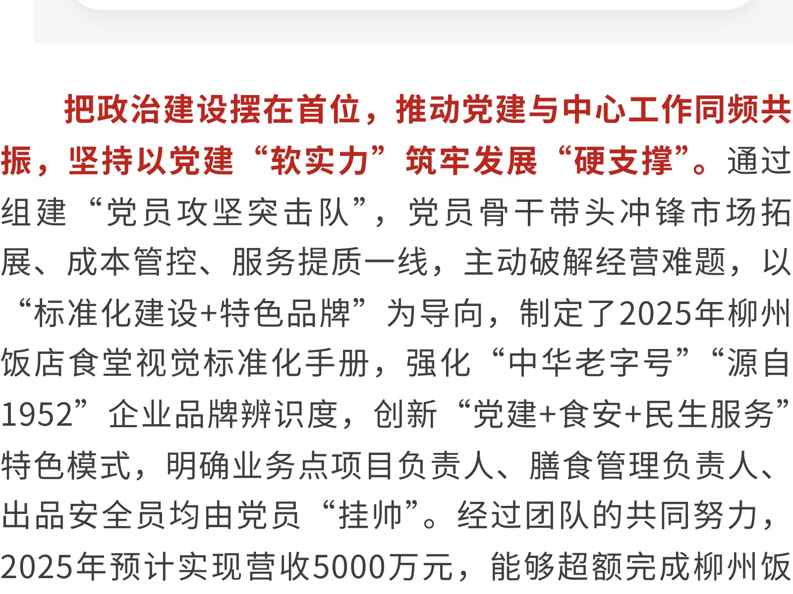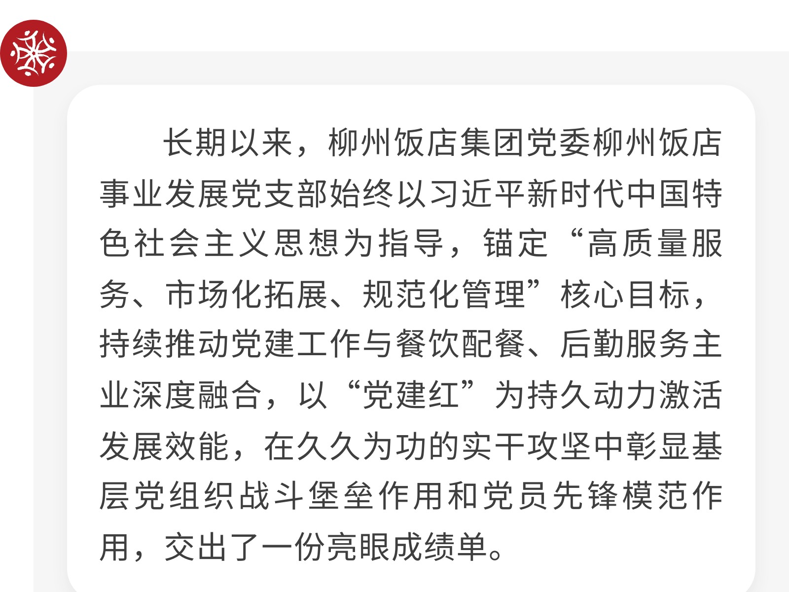 【實(shí)干繪就新答卷 黨建引領(lǐng)業(yè)務(wù)優(yōu)】柳州飯店事業(yè)發(fā)展黨支部推動黨業(yè)融合紀(jì)實(shí) 發(fā)布時間:2025年12月10日 10時來源:本站原創(chuàng)瀏覽:67 人次