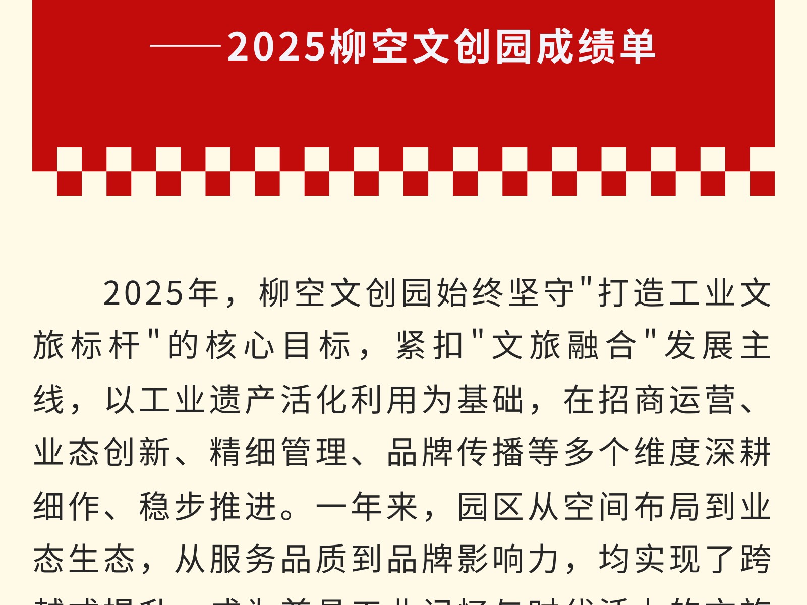 【文旅聚勢2025】從“鋼鐵廠房”到“網(wǎng)紅打卡地”——2025柳空文創(chuàng)園成績單 發(fā)布時間:2026年01月04日 13時來源:本站原創(chuàng)瀏覽:25 人次