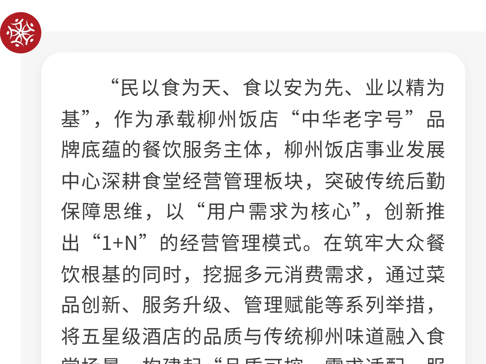 以“1+N”模式破局 重塑食堂經(jīng)營管理新生態(tài)——柳州飯店事業(yè)發(fā)展中心食堂管理創(chuàng)新實(shí)踐 發(fā)布時(shí)間:2026年01月22日 12時(shí)來源:本站原創(chuàng)瀏覽:55 人次