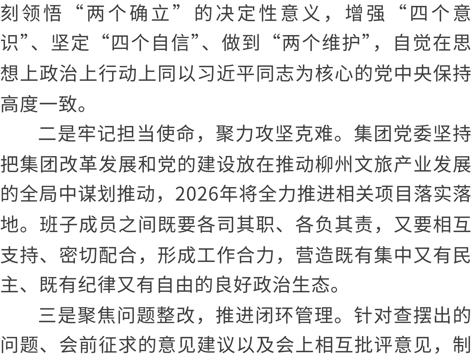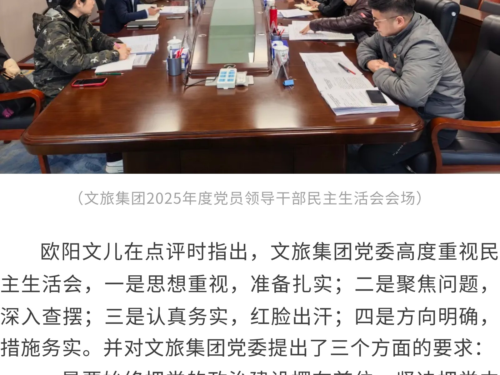 【黨建引領(lǐng)】文旅集團(tuán)黨委召開2025年度黨員領(lǐng)導(dǎo)干部民主生活會 發(fā)布時間:2026年02月12日 13時來源:本站原創(chuàng)瀏覽:48 人次