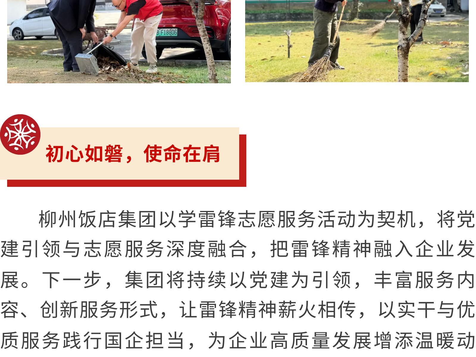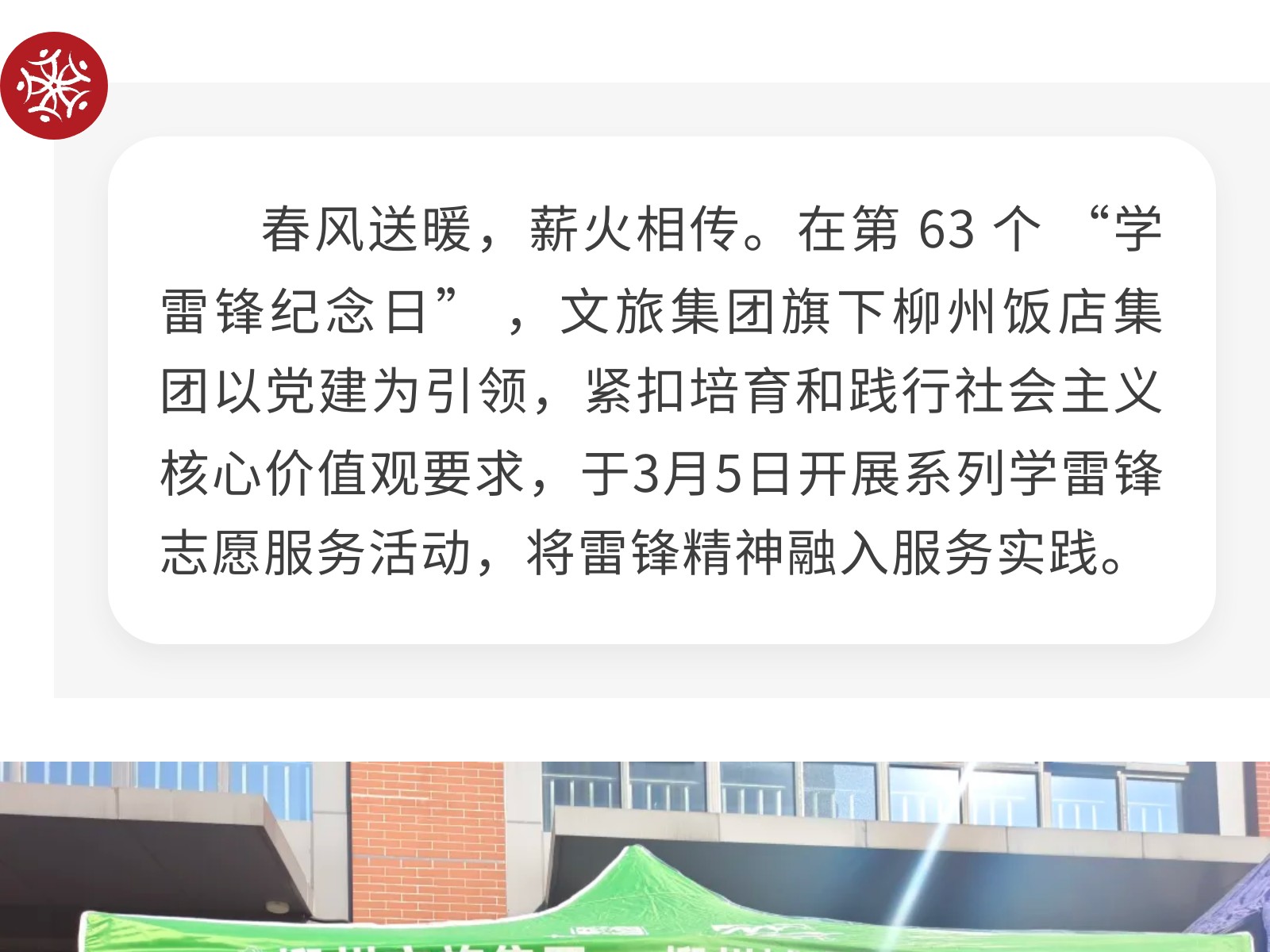 黨建引領(lǐng)聚初心 雷鋒精神綻芳華——柳州飯店集團(tuán)開(kāi)展學(xué)雷鋒志愿服務(wù)活動(dòng) 發(fā)布時(shí)間:2026年03月10日 09時(shí)來(lái)源:本站原創(chuàng)瀏覽:23 人次